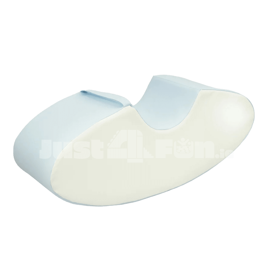 Our soft play sets can be just wiped with damp cloth, but please do not wash the fabric or put any products on it. Please note our soft play is NOT waterproof but can be used outside in good, dry weather along as it is not stored outside Soft play rocker in grey and white